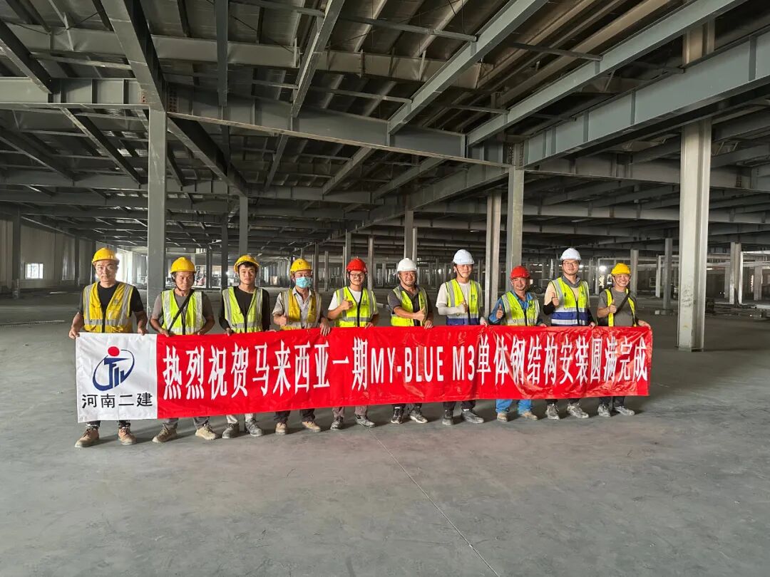 6月13日,由我公司承接的马来西亚一期MY-BLUE M3单体钢结构专业分包工程圆满完成。