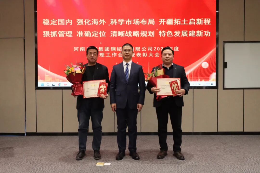 河南二建集团党委副书记、工会主席贾向军,河南二建集团副总经理、河南二建集团钢结构公司总经理张永庆为公司优秀员工颁奖